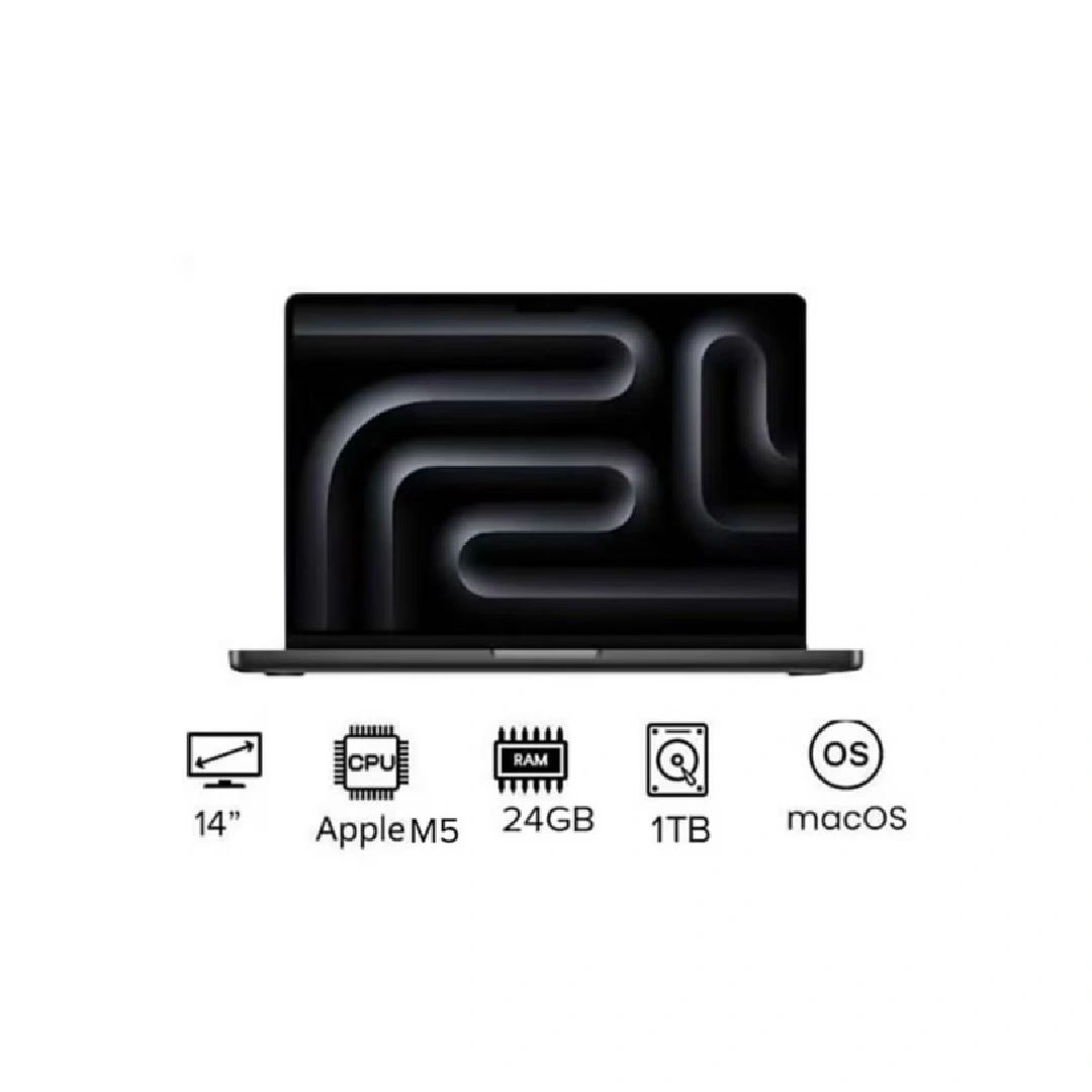 Apple MacBook Pro 14-inch MDE34 with Apple M5 Chip, 10-core CPU & GPU, 24GB RAM, 1TB SSD, macOS, and English keyboard. High-performance laptop for professionals, creatives, and power users.