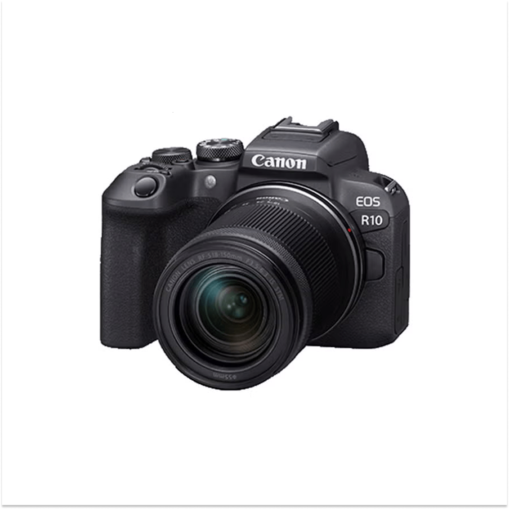 Canon EOS R10 Mirrorless Camera Kit with 24.2MP APS-C sensor and RF-S 18-150mm f/3.5-6.3 IS STM lens – perfect for versatile photography and smooth video.