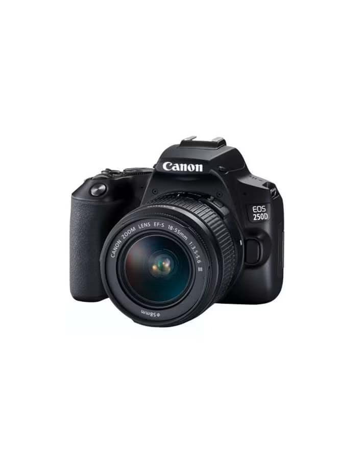 - Apperture f/5.6 Screen Type LCD Processor Type f/5.6 LCD DIGIC 8 18 mm 1 DSLR Camera, 1 Lens Autofocus Yes Battery Type Lithium Ion Camera Resolution 24.1 MP Colour Name Black Expandable Memory Type SDFeature 1 HD Movie Mode Feature 2 Rechargeable Battery Feature 3 Wi-Fi enabled Feature 4 Wi-Fi enabled Image Stabilization yes Inbuilt Flash yes Interchangeable Lens yes Max Shutter Speed 30/1/4000/second Model Name EOS 250D Model Number EOS 250D Product Height 69.8 mm Product Length 122 mm Product Weight 449 g Product Width/Depth 92.6 mm Screen Size 3 inch Sensor Type CMOS Touch Screen Yes View Finder Type Optical Zoom yes