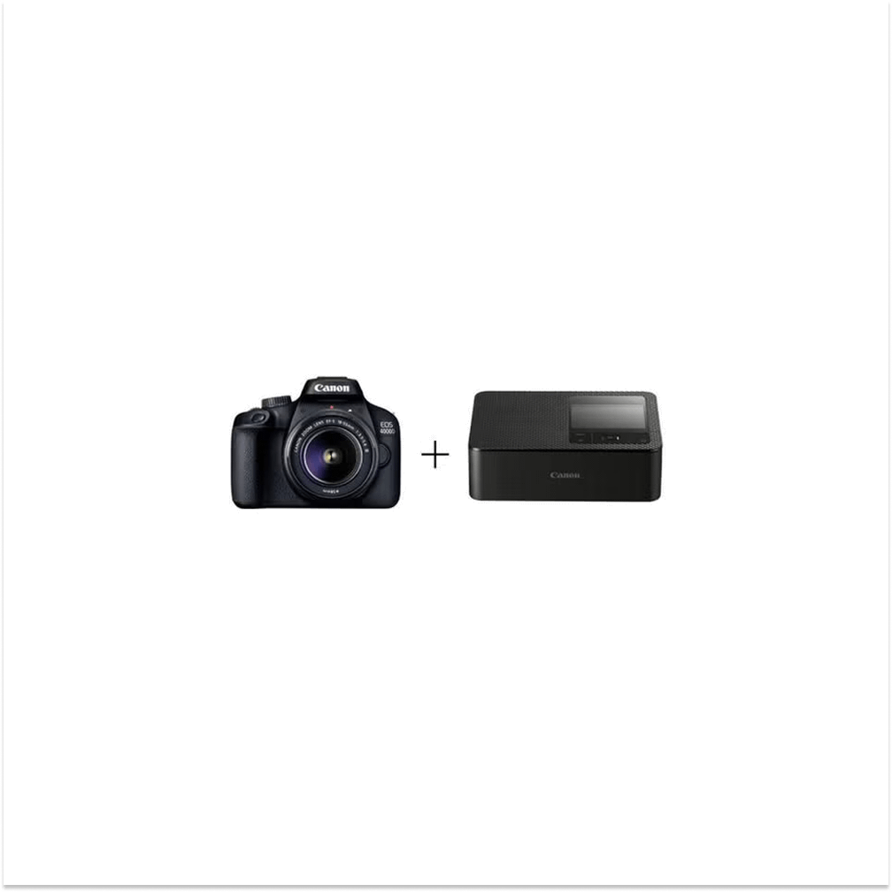 Canon EOS 4000D + Canon EF-s 18-55mm f/3.5-5.6 III Lens – Black with Canon portable photo printer CP1500 BLK