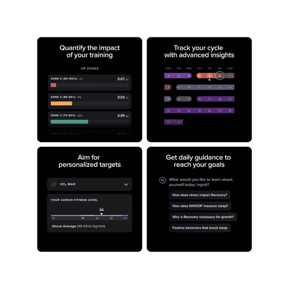Performance Tracking: Strain, recovery, heart rate, and daily readiness score